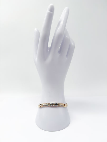 Ein besonderes Highlight sind die 32 natürlich entstandenen Diamanten im Baguette-Schliff, die dem Armband eine klare, edle Linienführung verleihen. Mit einem Gesamtgewicht von 1 ct sorgen die weiß/farblosen Diamanten für ein funkelndes, zugleich aber dezentes Erscheinungsbild. Jeder Diamant misst ca. 3 mm in der Länge und 1,75 mm in der Breite und ist harmonisch in das Design integriert. Die Kombination aus warmem Gelbgold und strahlenden Diamanten macht dieses Armband zu einem stilvollen Schmuckstück für Liebhaber klassischer Eleganz.