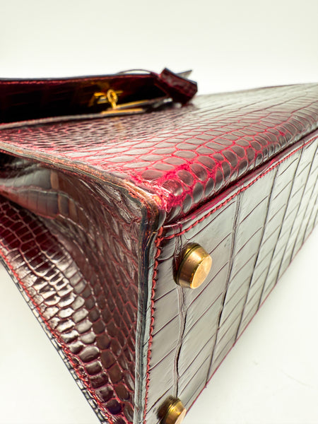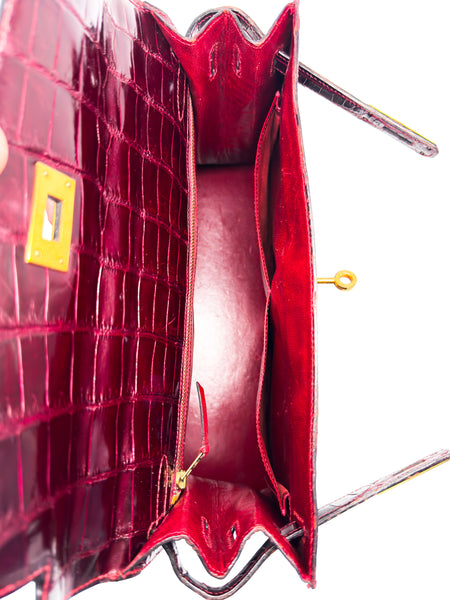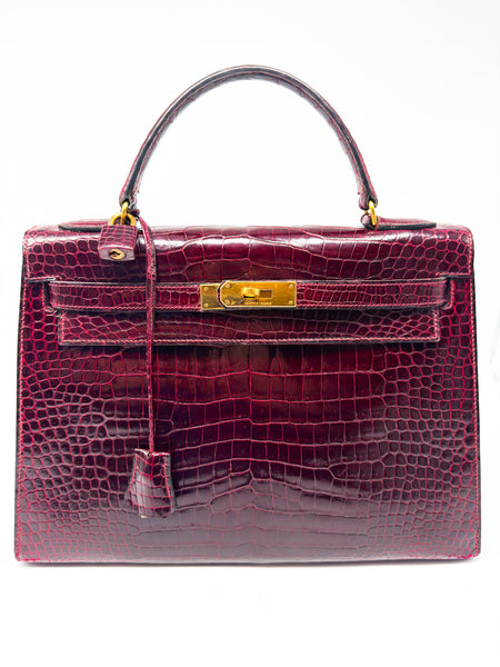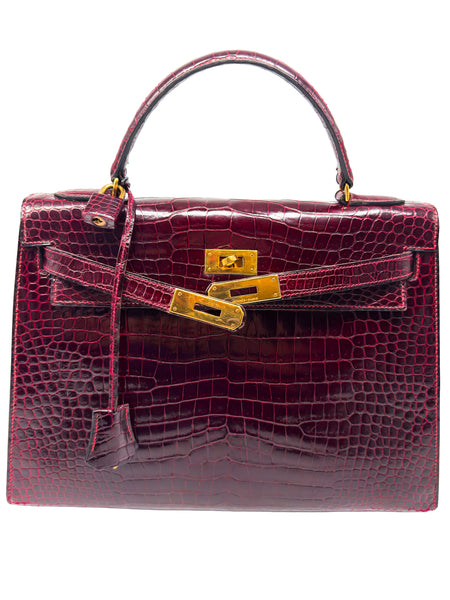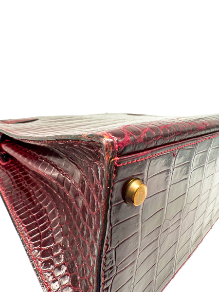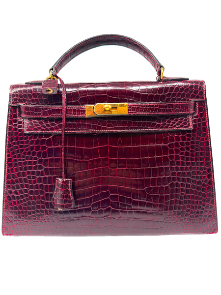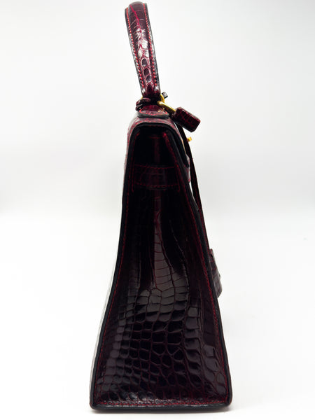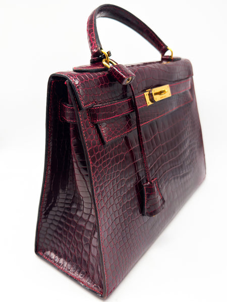 Erleben Sie luxuriöse Eleganz in ihrer reinsten Form – mit dieser exquisiten HERMÈS Handtasche aus hochglänzendem Krokodilleder in der faszinierenden Farbnuance Rouge H / Bordeaux. Dieses außergewöhnliche Modell ist nicht nur ein Symbol für Stilbewusstsein und Klasse, sondern auch ein Ausdruck handwerklicher Perfektion und exklusiven Geschmacks. Mit ihrer charakteristischen Kelly-Form im Sellier-Stil vereint sie klare Linien mit zeitloser Raffinesse – ein echter Klassiker unter den Luxus-Handtaschen.