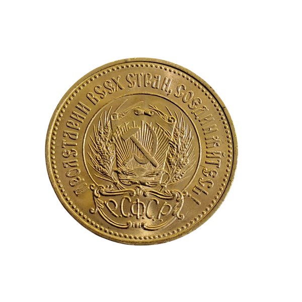 Der Tscherwonez ist eine historische sowjetische Goldmünze mit ikonographischem Wert. Die Münze zeigt das charakteristische Motiv von Hammer und Sichel und wurde erstmals 1923 nach der Oktoberrevolution geprägt. Ein Tscherwonez entspricht zehn russischen Rubeln und war lange Zeit ein bedeutendes Zahlungsmittel. Die Neuauflagen von 1975 bis 1982 wurden gezielt als Bullionmünzen produziert und dienten der Sowjetunion zur Devisenbeschaffung im internationalen Handel. Diese Münzen sind heute begehrte Sammlerobjekte für Numismatiker und Liebhaber sowjetischer Geschichte.