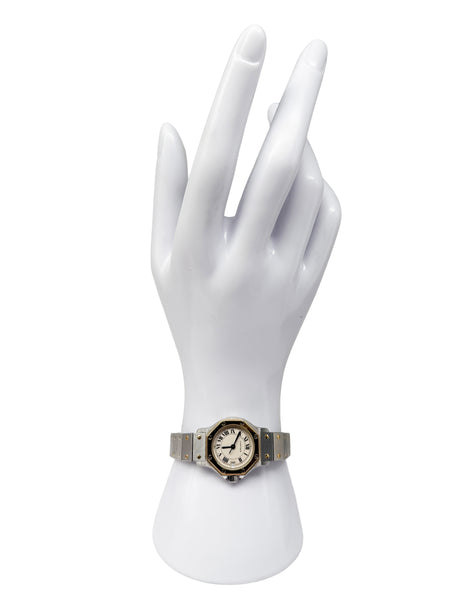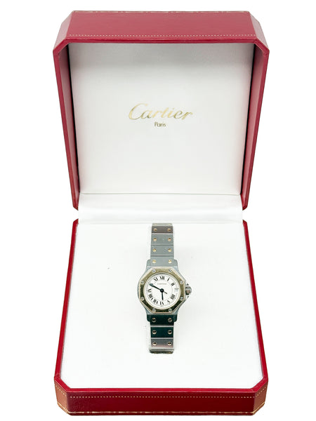 Eine stilvolle Cartier Santos Damenuhr – ein Klassiker der Uhrmacherkunst und ein elegantes Statement am Handgelenk.
