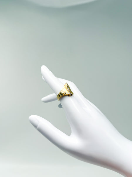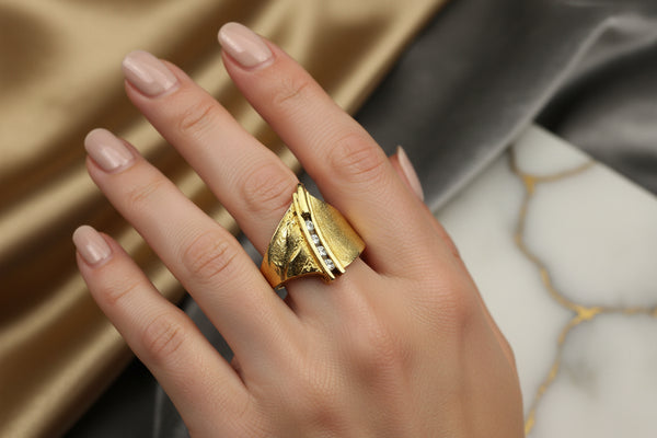 Der Ring befindet sich in einem sehr guten gebrauchten Zustand, mit nur minimalen Gebrauchsspuren, die dem Alter entsprechend sind und auf den Fotos ersichtlich werden. Die Ringgröße 52 bietet einen komfortablen Sitz und macht diesen Ring zu einem vielseitig tragbaren Schmuckstück. Durch sein zurückhaltendes, aber hochwertiges Design eignet er sich hervorragend als klassischer Begleiter, als Geschenk oder als stilvolle Ergänzung einer bestehenden Schmucksammlung.