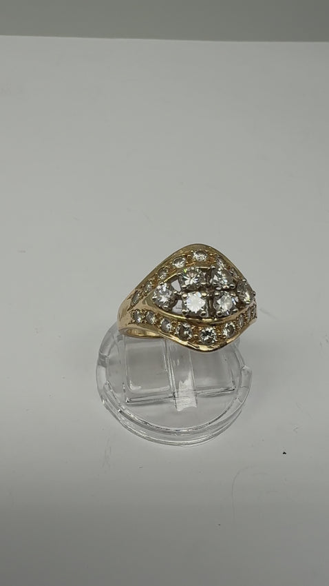 Dieser elegante Ring aus 14 Karat Gelbgold vereint klassische Handwerkskunst mit luxuriösem Glanz und ist ein wahres Statement zeitloser Eleganz. Mit einem Gesamtgewicht von 6 Gramm liegt er angenehm am Finger und überzeugt durch seine solide Verarbeitung und sein harmonisches Design. Der Ring präsentiert sich in sehr gutem Zustand, mit wenigen bis keinen Gebrauchsspuren, was ihn zu einem hochwertigen Schmuckstück mit bleibendem Wert macht.