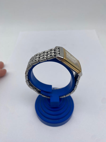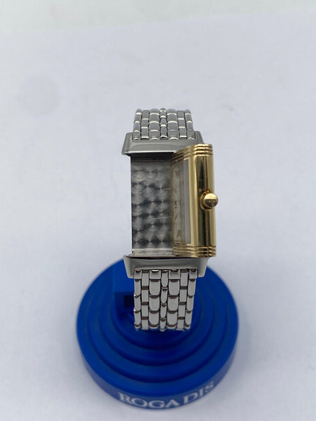 Die Jaeger-LeCoultre Reverso ist eine der ikonischsten Uhren der Welt und eine perfekte Wahl für Damen, die Luxus und Eleganz in einem zeitlosen Design suchen. Diese exquisite Armbanduhr aus dem Hause Jaeger-LeCoultre kombiniert hochwertigste Materialien und präzise Handwerkskunst zu einem wahren Meisterwerk. Mit einem Gehäuse aus Gold und Stahl strahlt die Uhr eine edle Eleganz aus, die sie zu einem besonderen Accessoire für jede Trägerin macht.